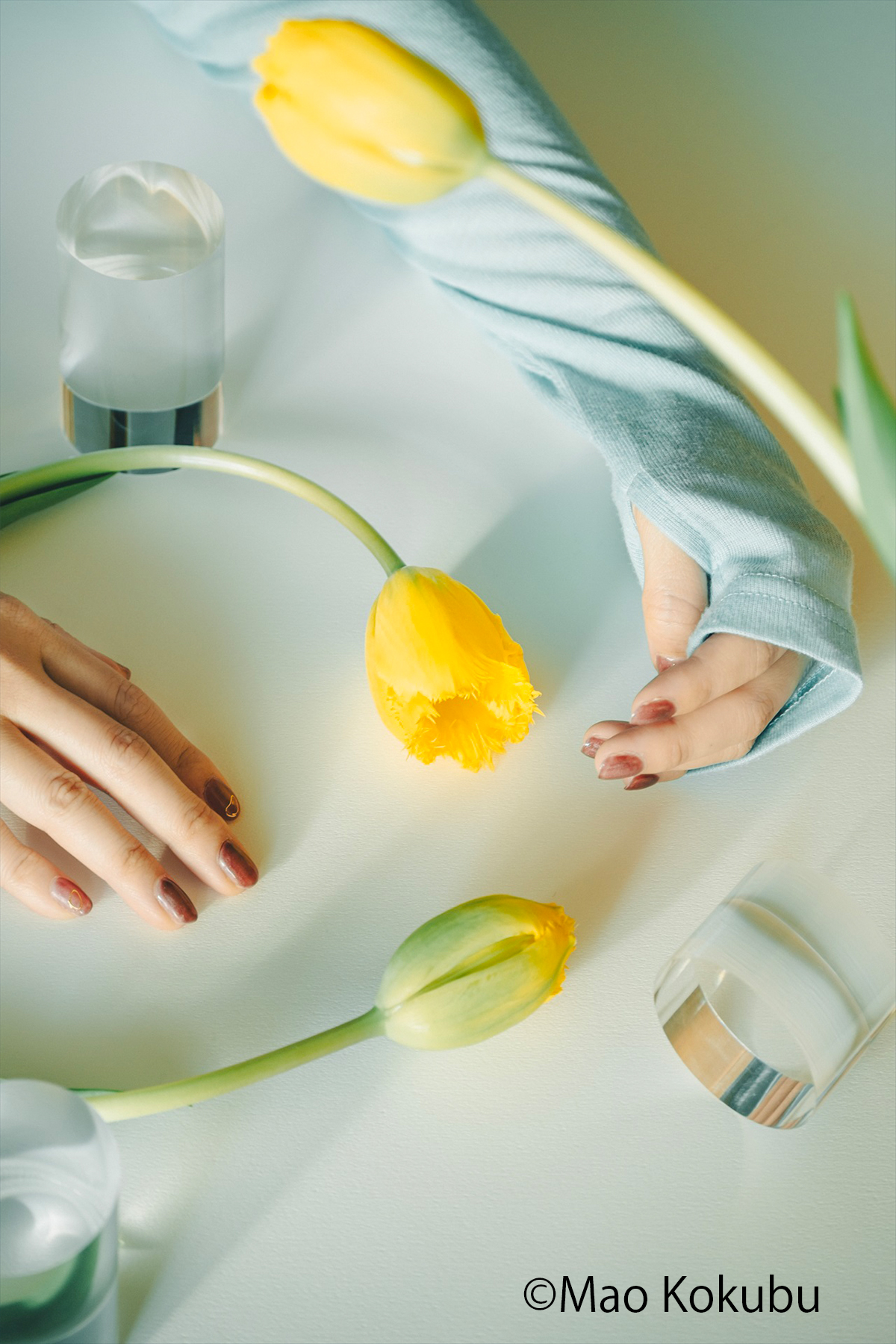 外の風景を追う撮影とは異なり、今回は室内に限定し、花と向き合う時間の断片を